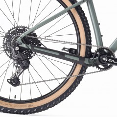 Aluminio Alpha Silver, guiado interno del cambio y la tija telescópica, soporte para portabultos y pata de cabra, y eje pasante ThruSkew de 135x5mm.