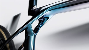 Carbono OCLV Serie 500, forma de tubo Full System Foil, tubo de asiento IsoFlow, sistema de juego de dirección RCS, enrutamiento electrónico o mecánico, guardacadena aerodinámico desmontable, eje de centro T47, disco de soporte plano, UDH, eje pasante 142 x 12mm.